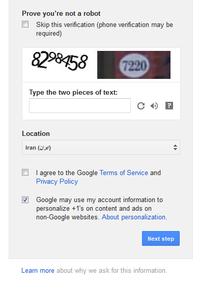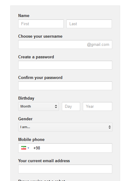 در کادر دوم آدرس gmail خود را وارد کنید سعی کنید که اسم و فامیل خودتان باشد.